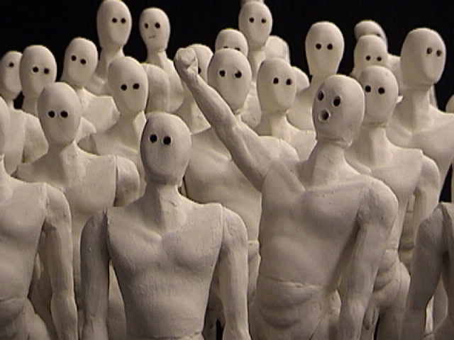 A critique of ideal body image in American culture, the conflicting physical realities, and the mixed signals projected in mass media. Toying with people’s insecurities, the marketing machine bombards with imagery worshipping a perfect body – and also assaults with ads promoting over-consumptive, sedentary lifestyles. The result: an obese America – and a ready market for a miracle cure.